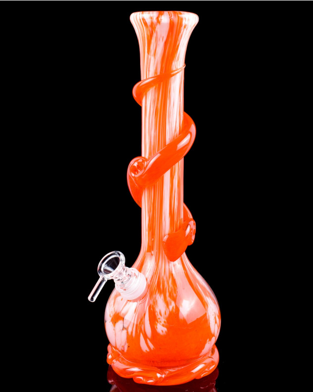 Blushing Blossom - 12" Flower Vase Wire Wrapped Round Base Bong - Orange Melon