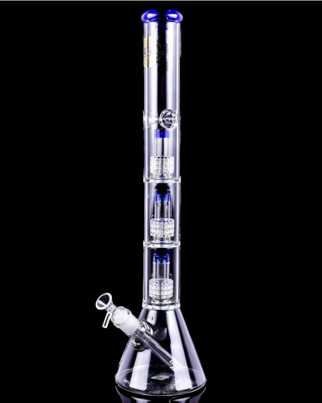 Do you love big bongs? with better filtration because The Triple Showerhead Bong by SmokeDay features three precision cut showerhead percolators for a 3x filtered hit. When standing tall at 18 inches, your lungs will thank you for the ultra diffused hit as smoke passes through each layer of percolation. The triple ice notches in combination with long neck ensures you can rip without the worry of splash back. The included bowl has a handle, so burnt fingers aren't a concern here. We can't wait for you to give this big bong a try! and tell us about it.