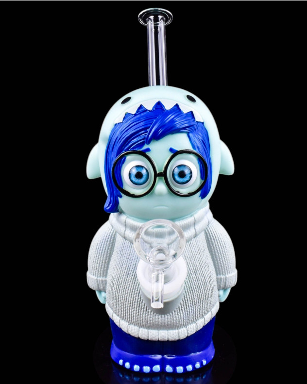 Meet the Frowny Friend Mini Silicone Bong, a charming yet functional piece designed to bring personality to every session. Standing 7.1 inches tall, this compact bong features an expressive blue character with oversized round glasses, detailed sweater texture, and a crystal-clear glass neck that doubles as the mouthpiece. The durable silicone body helps protect against drops, making it ideal for everyday use or travel.