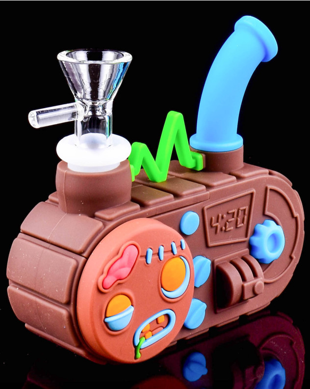 The Mini Radio Silicone Bong blends playful design with dependable performance in a compact 4.2-inch form. Styled like a retro radio, this unique piece features detailed knobs, colorful accents, and a quirky face graphic that gives it personality while remaining fully functional. The flexible silicone body is highly durable, making it resistant to drops, cracks, and everyday wear-perfect for both home use and travel.