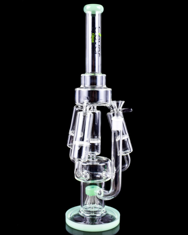 Clover Glass 18" Quad Honeycomb Perc w/ Tree Perc Bong - Milk Green
