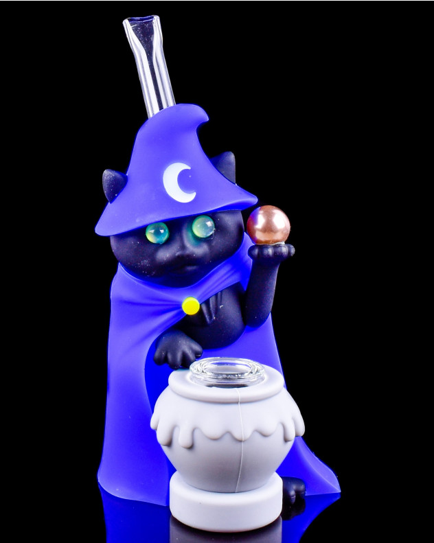 Cute Silicone Wizard Cat Bong - Blue