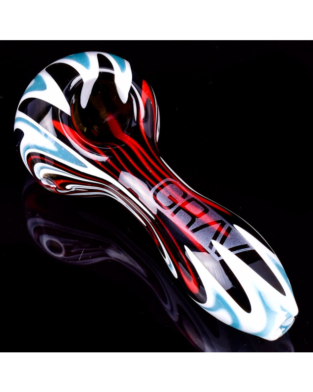It's easy to get mesmerized by the GRAV® WigWag spoon. The distinctive swirls come from layering clear and colored glass, which adds weight and durability to this spoon. Under all that flash is a piece that will last, and the inverted ash catching mouthpiece will make it a pleasure to use as well as to look at. Each batch of these whirly wonders is unique, so the colors will be a surprise that will vary from the picture.