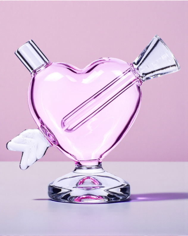 Introducing the Cupid's Heart with Arrow Blunt Bubbler—the ultimate must-have for those who adore a touch of romance and whimsy with their smoke sessions. This darling heart-shaped bubbler, kissed with a soft pink hue, is perfect for anyone who wants to sprinkle a little love into their daily routine. With a dainty arrow piercing through the bubbler, it symbolizes everlasting love and passion, making it an absolutely irresistible choice for girly girls and romantics at heart.