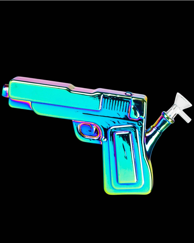 Lock, load, and light up with the Iridescent Pistol Bong - a bold smoking piece that brings serious heat to every session. Crafted from durable 5mm borosilicate glass, this pistol-shaped bong isn’t just a novelty—it’s a functional showpiece built to deliver smooth, satisfying hits. At 8.5 inches long, it’s compact enough for easy handling yet substantial enough to make a statement in any collection.