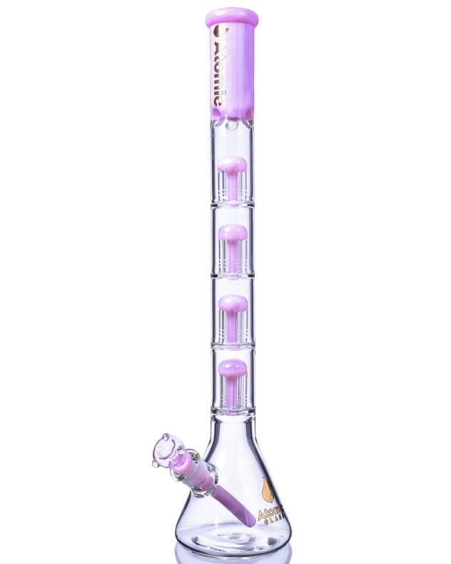 Oh boy, strap in and light up with the Atomic Glass - 22" Quad 6-Arm Tree Perc Big Beaker Bong, a true behemoth in the world of big bongs! Standing a towering 22 inches, this bad boy isn’t just big—it’s monumental. Decked out with not one, not two, but four wicked 6-arm tree percolators, this beast churns out the smoothest, chilliest smoke you’ve ever inhaled, thanks to its trio of ice notches that let you pile on the cubes for an arctic blast in your throat. Complete with a matching 14mm dry herb bowl and a robust 18mm downstem, this beaker bong turns every session into a showstopper. Tall, bold, and undeniably smooth, the Atomic Glass Big Beaker Bong is your go-to when only the coolest, most epic hits will do!