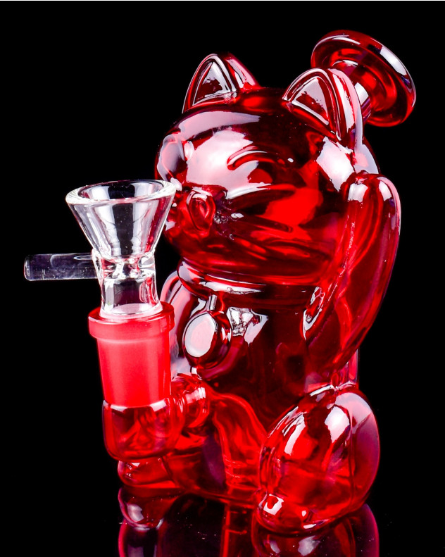 Despite its mini stature, this bong is robust in build, with a stable base that ensures it sits securely on any flat surface. The form is both ergonomic and artistic, with curves that mimic the grace of a cat, from its pointed ears to the delicate details of its paws. The bowl is sized to perfection, allowing for just the right amount of material for a personal session.