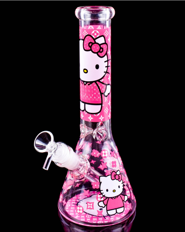 Upgrade your setup with the Luxury Louis x Cute Kitty Beaker Bong, where iconic designer vibes meet playful kawaii style. Standing 10 inches tall, this eye-catching piece features a vibrant pink finish with all-over luxury-inspired monogram detailing, paired with an adorable kitty graphic that wraps beautifully around the neck and base.
