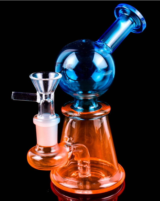 The R&M Mini Beaker Bong packs bold style and smooth performance into a compact 6-inch design. Crafted from durable, thick glass, this mini bong features a classic beaker base for added stability and reliable water filtration. The vibrant two-tone colorway, with a rich red base and eye-catching amber spherical neck, gives it a standout look while enhancing airflow. Its angled neck provides a comfortable draw, making each hit smooth and controlled. Perfect for quick sessions or discreet use, the R&M Mini Beaker Bong includes a removable 14mm dry herb bowl and is ideal for home or on-the-go smoking.