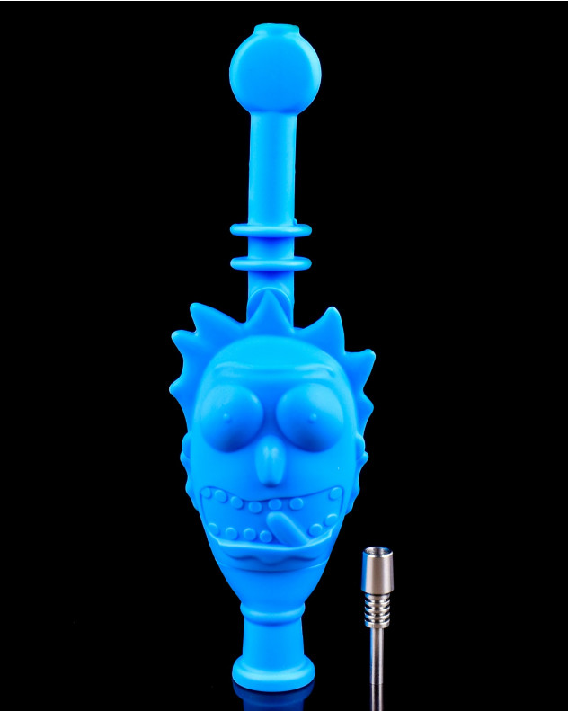 Introducing the Rick & Morty Silicone Nectar Collector, an eye-catching and durable piece for your concentrate collection. Crafted from premium silicone, this collector is nearly indestructible and perfect for on-the-go use. It features a vibrant blue color and a whimsical design inspired by the popular Rick & Morty series, showcasing a fun character face that adds a touch of personality to your smoking sessions.
