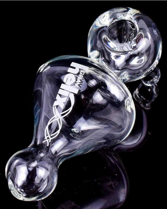 Come see your smoke spin like a tornado! Seeing this helix hand pipe in action is like being treated to watching superhero 'Storm' play around with her weather manipulating powers live. The side view of this pipe has an interesting appearance. The two small projections look like the antenna of an Android or alien species sent from the future to ensure you get constant supply of mind-boggling hits. The helix air chamber of the Tornado Storm utilizes the wonders of physics to aerate and cool your smoke. The chamber, which is shaped like a funnel or bulb, has small slits that are in the same direction. The holes alter the direction of incoming smoke in different ways, creating the twirling tornado smoke shape that helix pipes are famous for. The swirling movement dramatically increases the surface area of smoke that comes in contact with cooler air in the chamber, thus cooling the smoke. The overall result is efficient cooling and aeration of smoke, producing hits as smooth as silk.