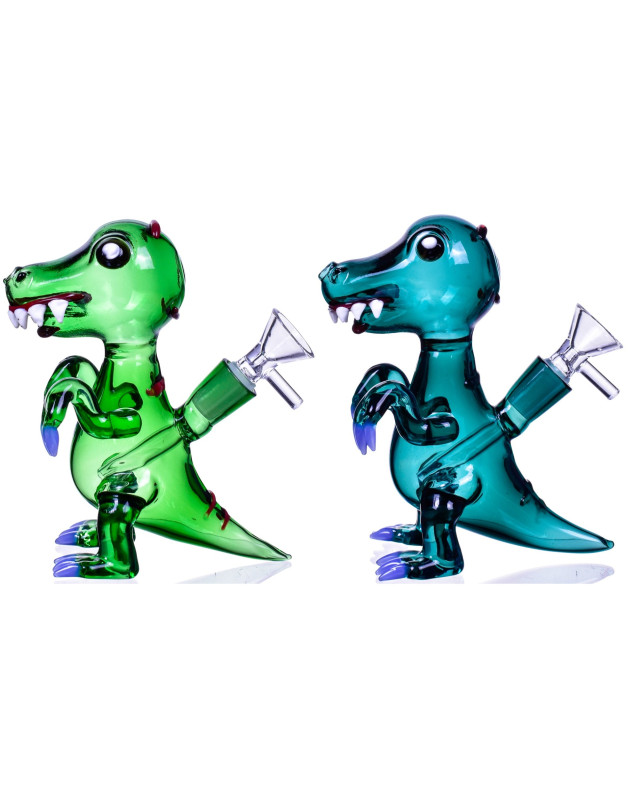This beast of dinosaurs of a bong is expertly crafted into the shape of pre-historic terror, allowing it to be a sure-to-be standout in your collection. Enjoy smooth, cool hits from the mouthpiece on the dinosaurs snout and watch him fill with smoke as you toke. He may not out hale fire, but he comes close enough to allow smoke out hale.